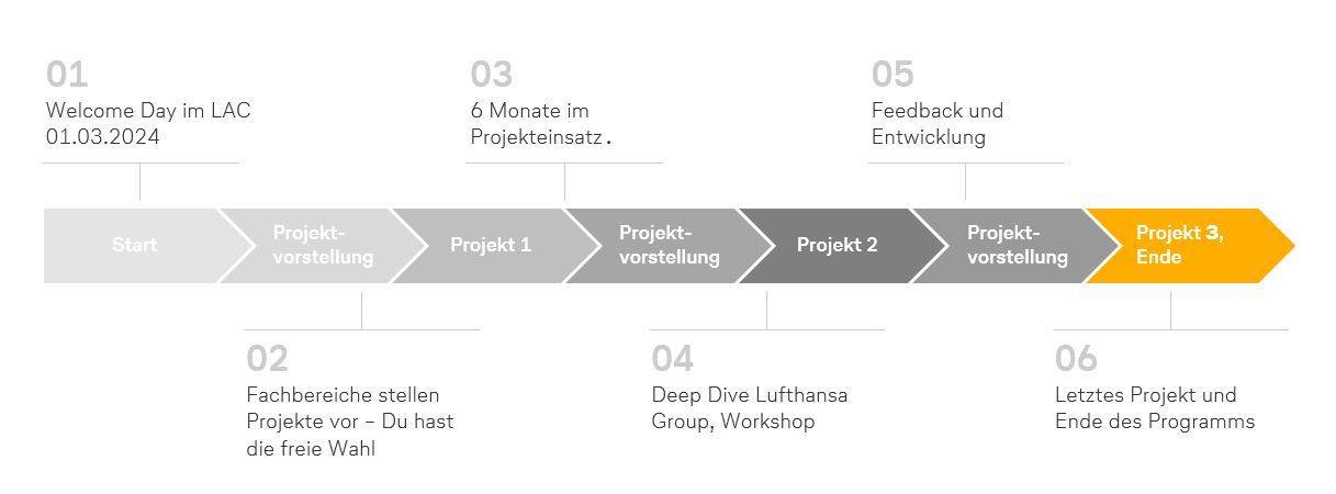 ProMaster verbindet klassische Trainee-Elemente mit einer Werkstudententätigkeit: Du arbeitest regelmäßig (18,75 h / Woche), hast jedoch den Vorteil, dass du während deiner Zeit bei uns durch 3-4 Abteilungen rotierst. Du suchst dir insgesamt 3-4 Praxisprojekte à ca. 6 Monaten, die aus den unterschiedlichen Abteilungen und Konzerngesellschaften kommen. Dazu nimmst du an Workshops teil, die dir ein tiefes Verständnis für den Konzern und die Luftfahrt vermitteln. Auch darfst du eine ganze Woche hands-on am Flughafen mitarbeiten. Wir nennen dies die "Airport week". Hier unterstützt du tatkräftig beim Check-In, Boarding uvm.. Zusätzlich hast du die ganze Zeit über ein:en Programm-Manager:in an deiner Seite, der / die dich unterstützt.